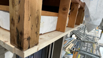 足場を設置し、必要最小限の範囲で解体を進めたところ、 外からは分からなかった下地木部の腐食や防水不良が確認されました。