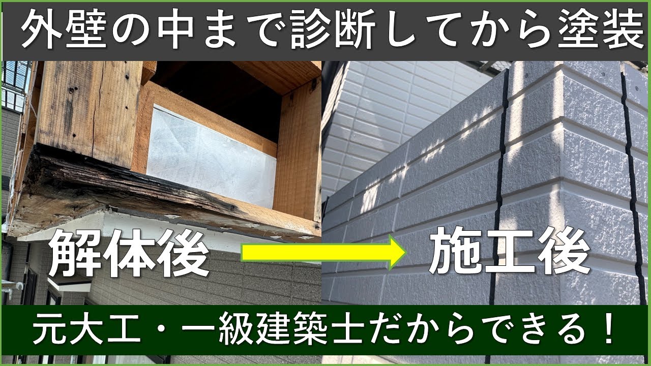 | 備考 | 外壁サイディングの浮き・傷みが気になるとのご相談から、現地調査を実施したことがきっかけでした。 外観上は部分補修で済みそうにも見えましたが、 建物の立地条件やバルコニー形状を踏まえると、内部の状態確認が不可欠と判断。 「今だけ直す」のではなく、 この先も安心して住み続けられるかどうかを基準に、工事の進め方を検討。 足場を設置し、必要最小限の範囲で解体を進めたところ、 外からは分からなかった下地木部の腐食や防水不良が確認されたため、 下地・防水を整えたうえで、 サイディング修理を実施しました。 |