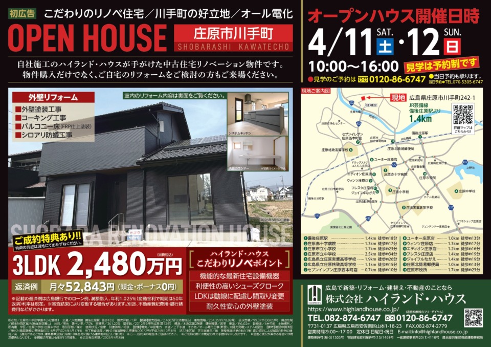 【4月11日・12日】オープンハウス開催!│庄原市川手町